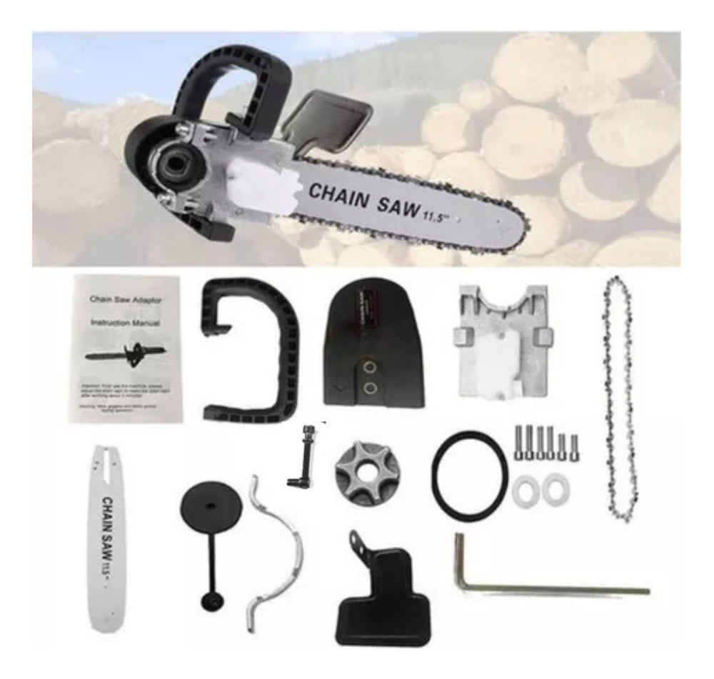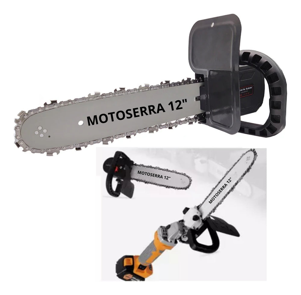 Transforme sua esmerilhadeira em uma motosserra portátil com este kit prático e seguro. Ideal para serrar, podar, realizar diversos tipos de cortes e obter lenha, proporcionando alta performance para suas tarefas.