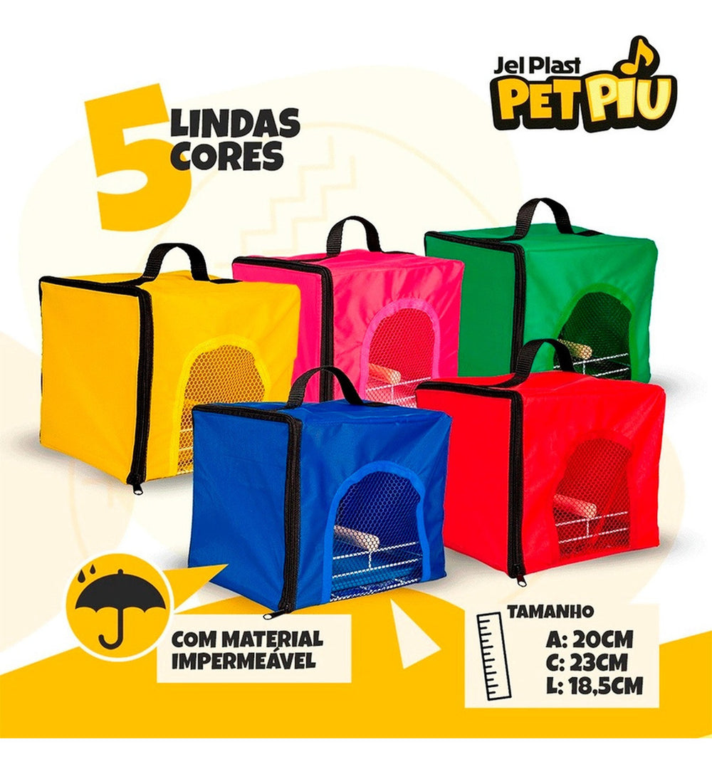 Transporte seus pássaros com segurança e conforto utilizando a Bolsa Transporte Jelplast. Ideal para calopsitas, periquitos e papagaios, esta mala container é projetada para acomodar até duas aves com praticidade e funcionalidade.