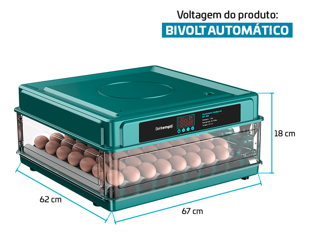 Descubra a eficiência da Chocadeira Incubadora Automática Beltempo BT-400, ideal para a eclosão de diversos tipos de ovos. Com design inteligente e operação bivolt, ela simula o ambiente natural, garantindo alta taxa de sucesso e segurança INMETRO.