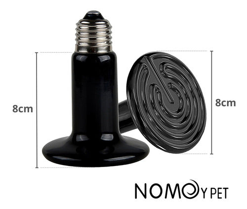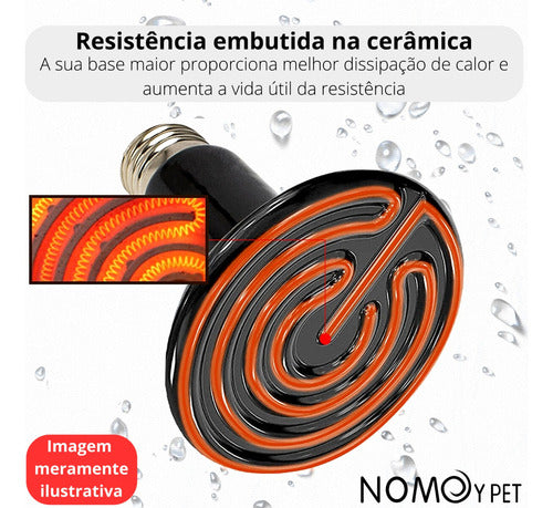 Garanta o conforto térmico ideal para seus animais com a Lâmpada Aquecedora Cerâmica NOMOYPET. Projetada para emitir calor infravermelho sem luz, esta lâmpada essencial mantém o ciclo natural de seus pets, ideal para répteis, aves e mamíferos.