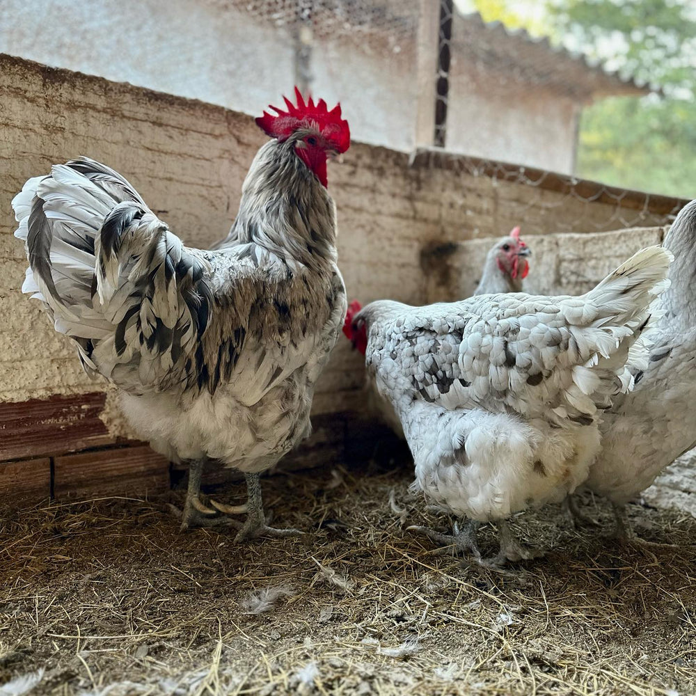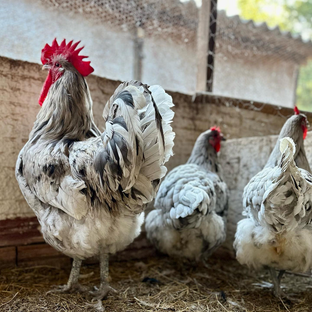 A Gigante de Jersey Pincelado é uma raça imponente, valorizada tanto pela sua presença marcante quanto pela qualidade de sua carne saborosa. Estas aves de grande porte combinam uma estrutura robusta com uma notável capacidade de postura, sendo uma excelente adição para quem busca animais de grande envergadura no plantel. Com galos que podem alcançar até 65cm de altura, destacam-se pela sua beleza e rusticidade.