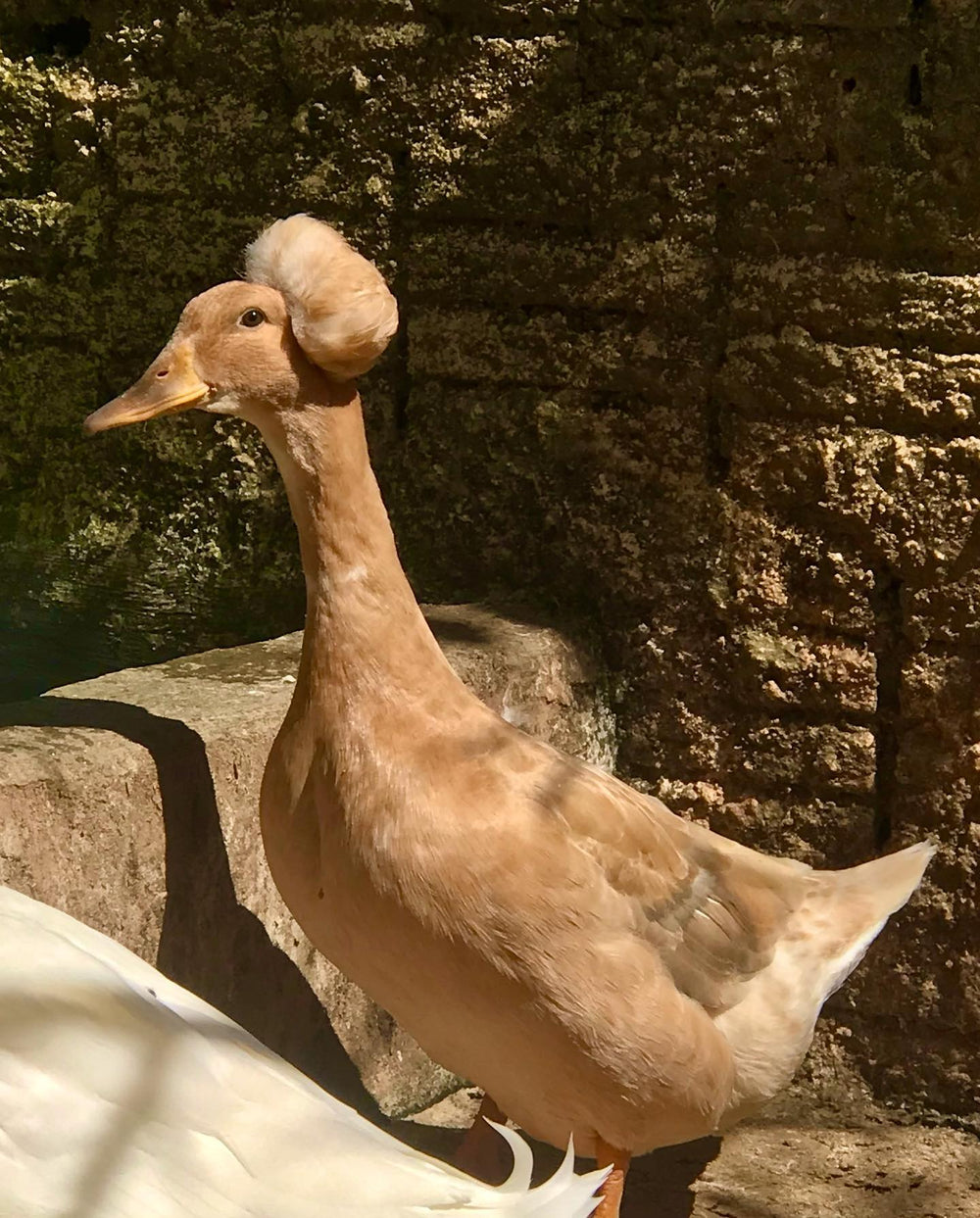O Marreco Pompom é uma das mais belas aves aquáticas, distinguindo-se pelo seu impressionante sopro de penas na cabeça, que lhe confere um visual único. Esta raça de peso médio é conhecida por seu duplo propósito, sendo apreciada tanto para a mesa quanto pela sua capacidade de postura.