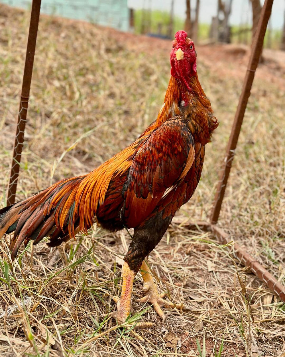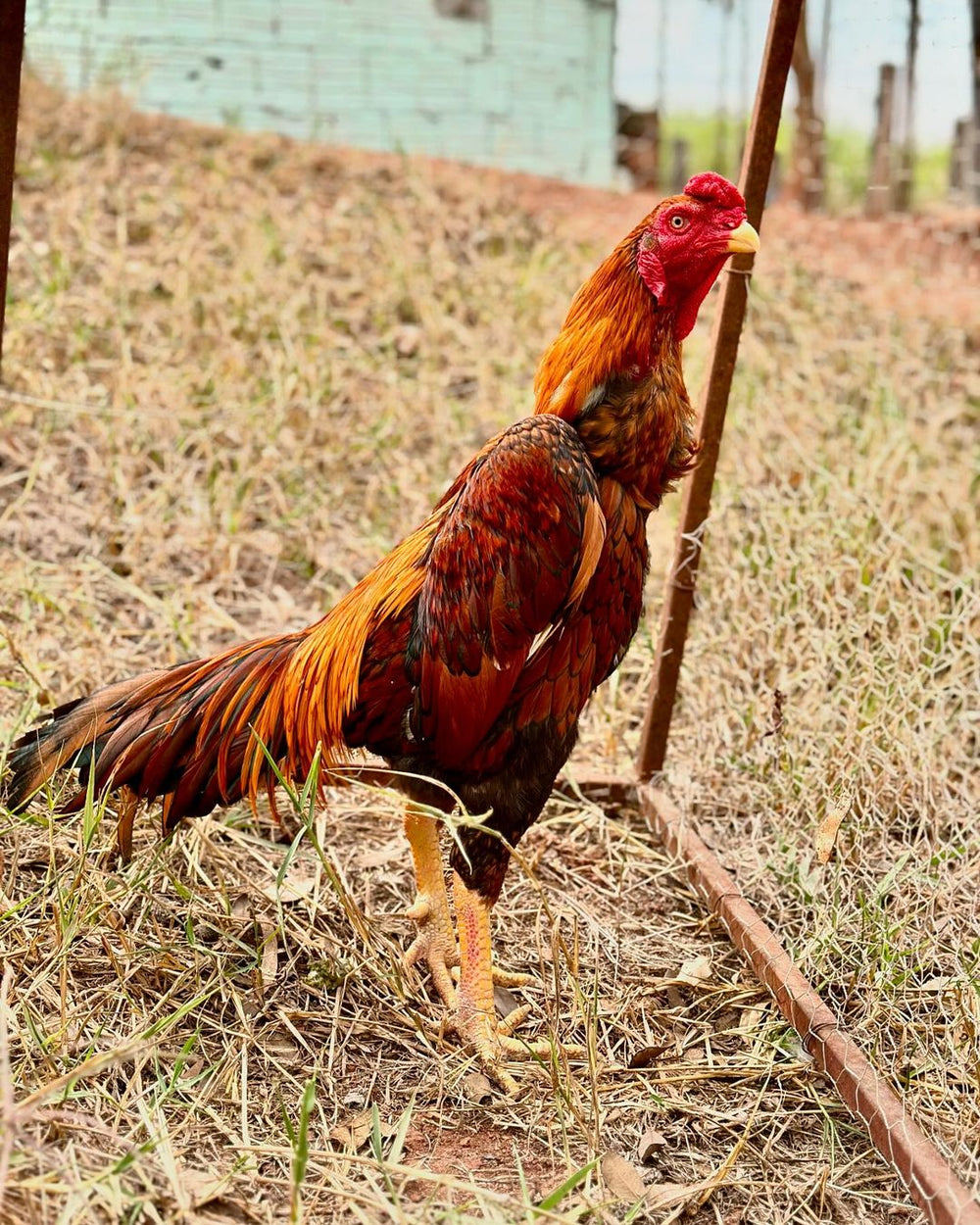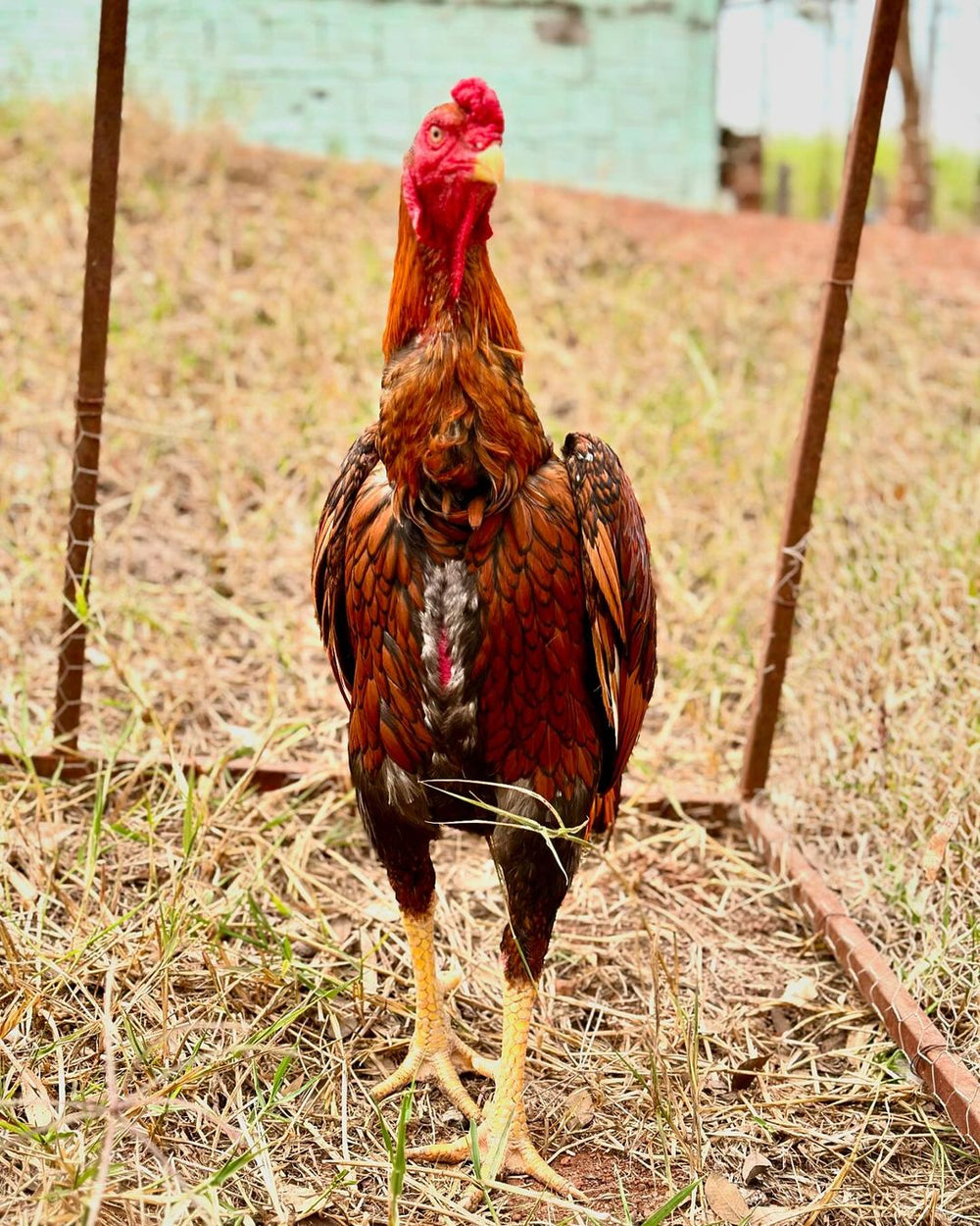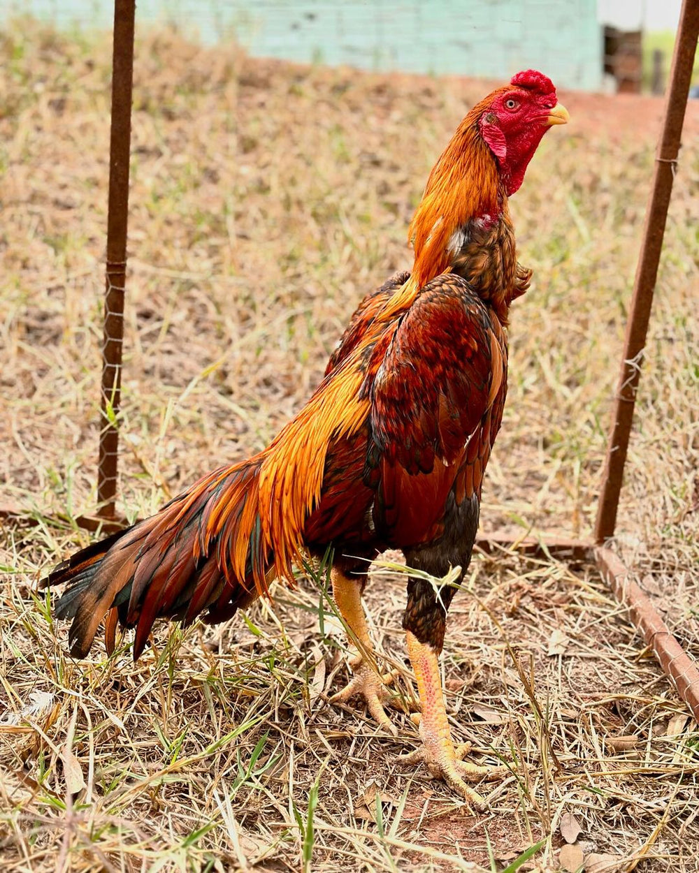 O Shamo Osaka Amarelo é uma raça de origem tailandesa, conhecida por sua impressionante musculatura, plumagem pegajosa e curta, e um olhar marcante e agressivo. Estes galos são valorizados por sua grande valentia, dureza e determinação. Além de sua beleza imponente, a raça também é apreciada pela sua carne saborosa.