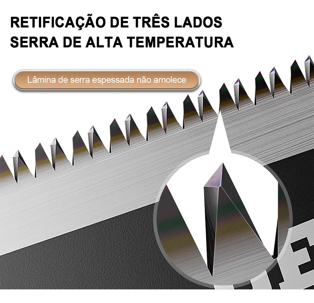 Este Serrote Japonês Dobrável é a ferramenta profissional ideal para suas necessidades em marcenaria e jardinagem. Fabricado em aço SK5 de alto carbono, oferece cortes precisos e eficientes em diversos materiais, com um design ergonômico que garante conforto e controle.