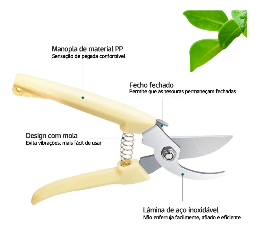 A Tesoura de Poda Profissional é ideal para jardinagem, oferecendo corte leve e preciso para diversas tarefas. Perfeita para podas leves, limpeza, desbaste e colheita de frutas, sua engenharia garante eficiência e conforto.